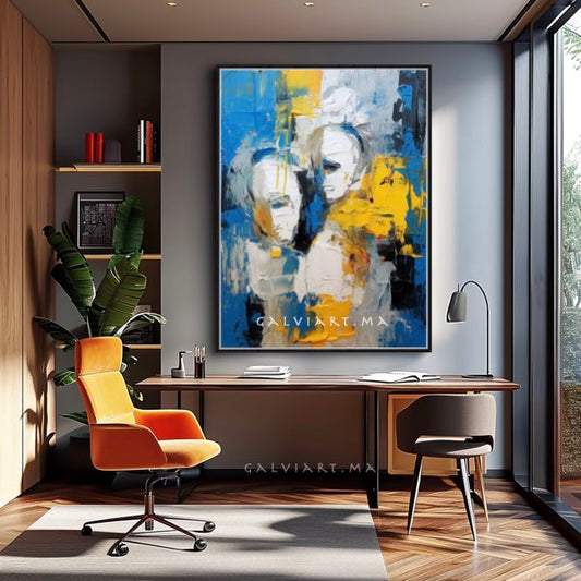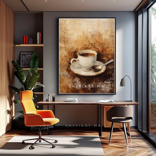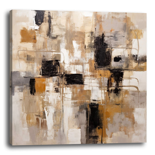 Tableau Abstrait - Décoration Murale Élégante en Marron, Noir, Beige et Blanc