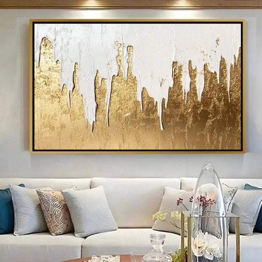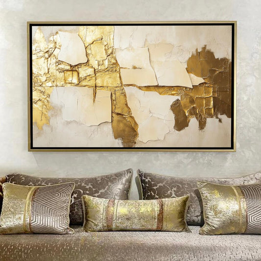Art Abstrait en Plâtre Original - Toile Beige et Doré