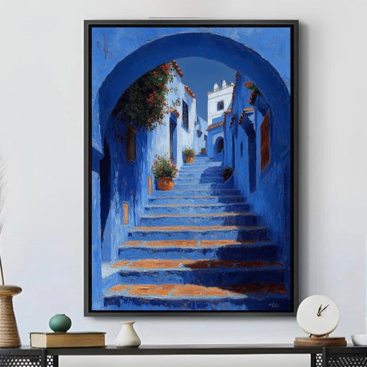 Peinture Chefchaouen - Escaliers Bleus en Détails