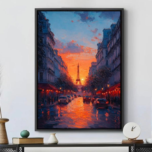 Peinture Acrylique Paris - Avenue au Coucher du Soleil Vue d’un Café