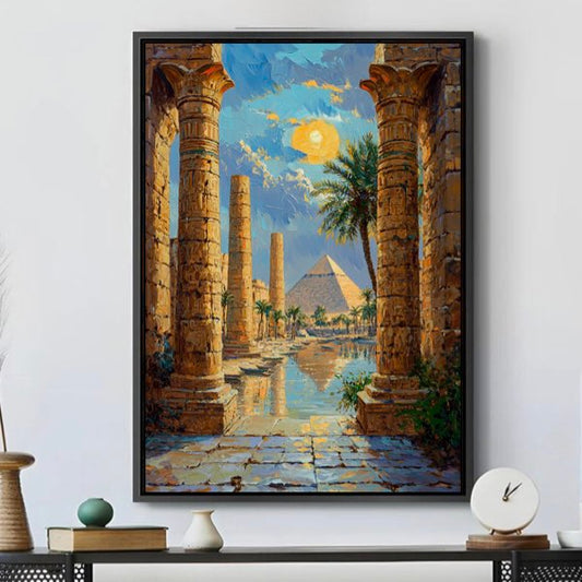 Peinture des Pyramides de Gizeh et du Temple de Karnak