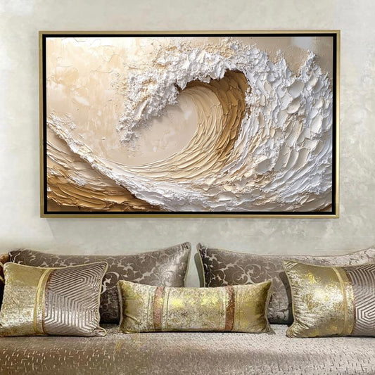 Peinture Abstraite de Vague Océan en Blanc et Beige