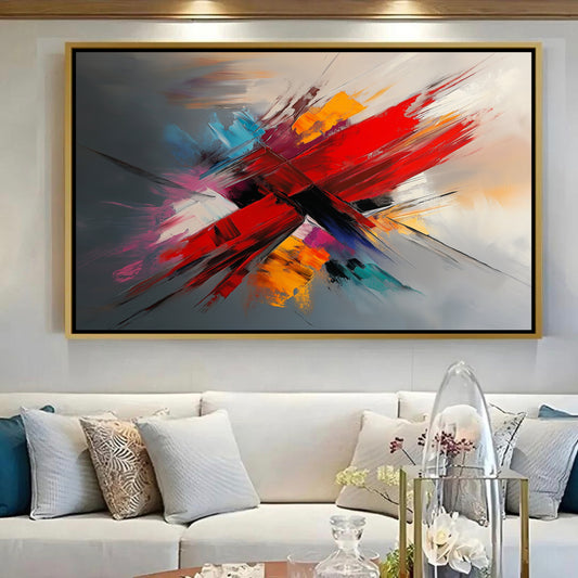 Tableau Abstrait avec Rouleau Rouge et Touches de Couleurs